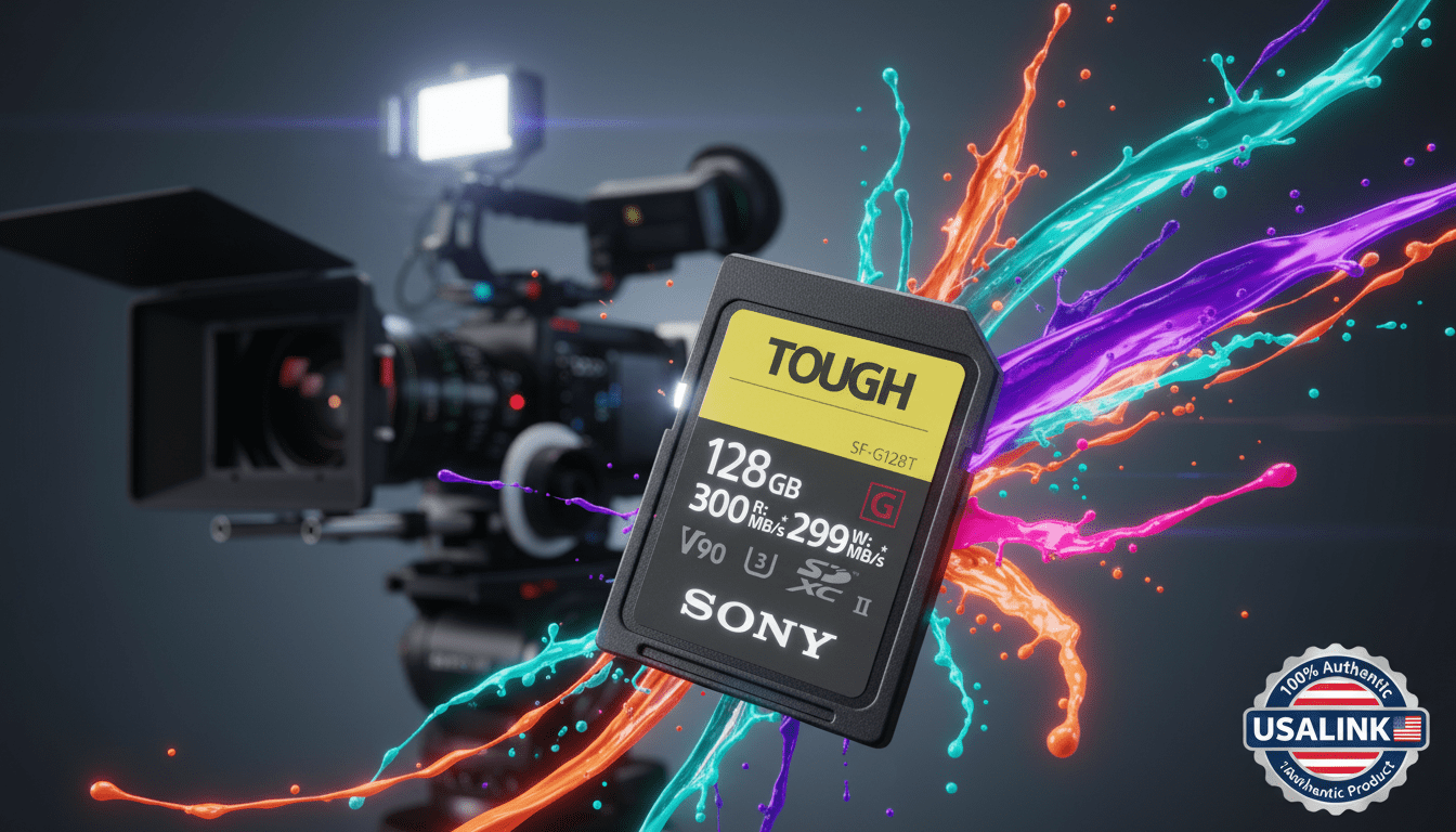 Sony Tough 128GB G-Series (SF-G128T) — профессиональная карта памяти SDXC UHS-II с классом скорости V90, разработанная для киносъёмщиков и репортажных фотографов, работающих в экстремальных условиях. Скорость записи до 299 МБ/с и чтения до 300 МБ/с обеспечивают мгновенную очистку буфера при серийной съёмке до 20 кадров в секунду в формате RAW и непрерывную запись видео 8K с битрейтом до 720 Mbps. Монолитный корпус без рёбер жёсткости и переключателя защиты от записи в 18 раз прочнее стандарта SD (выдерживает давление до 180 ньютонов), сертифицирован по стандарту IP68 (полная защита от воды и пыли), выдерживает падения с высоты 5 метров и работает в диапазоне температур от -25°C до +85°C. Идеальный выбор для камер Sony Alpha (A1, A9 III, A7R V), Canon EOS R5/R3, Nikon Z9 и кинокамер Blackmagic.