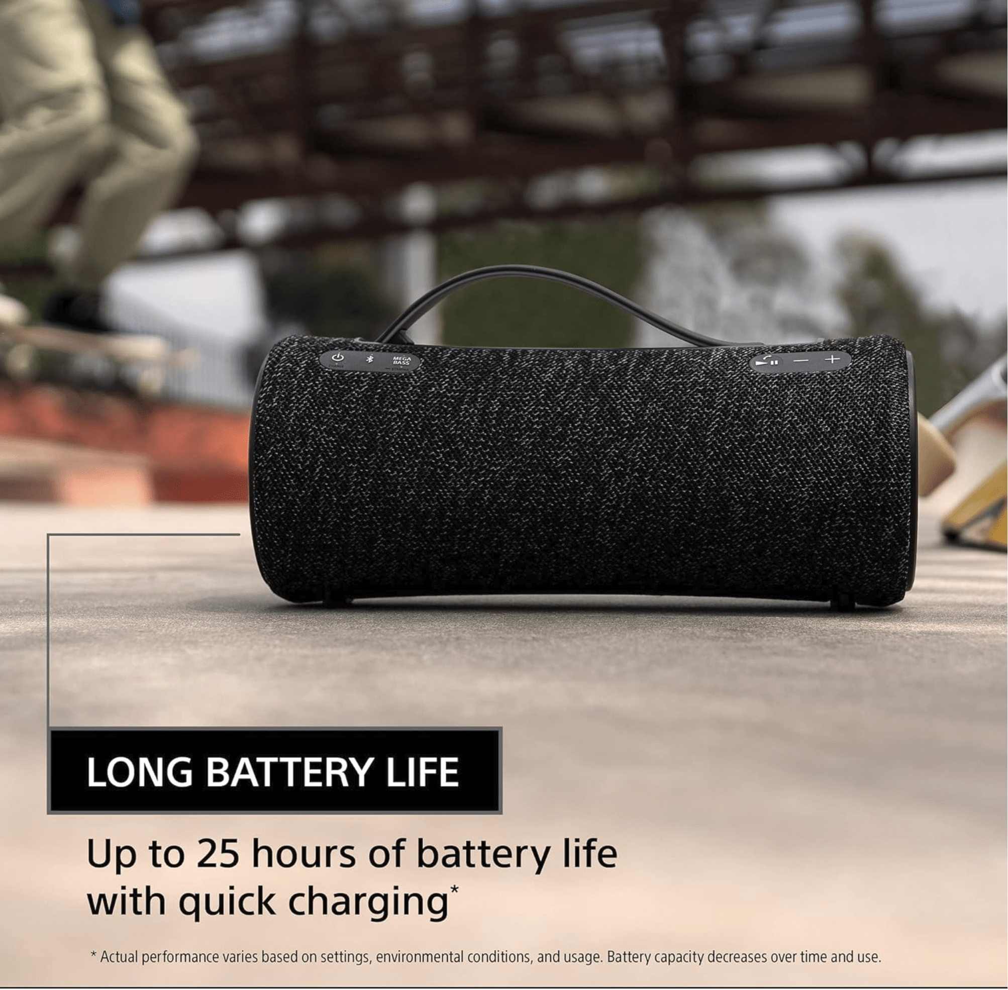 Если вечеринка обещает быть долгой, а розетки рядом нет, активируйте режим 'Stamina Mode' в приложении Sony | Music Center. Он немного уменьшит мощность баса, но значительно продлит время работы аккумулятора. Идеально для долгих выездов на природу.